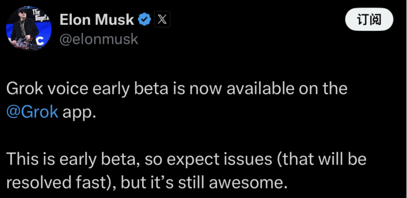 北京时间2月23日,马斯克在社交平台X发文宣布,Grok语音模式早期测试版现已在Grok应用程序上线。“虽然这是早期测试版本,可能还会遇到一些问题(不过我们会迅速解决),但它依然非常棒。”