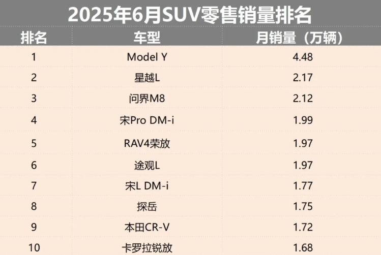 随着两款全新车型首次进入销量榜单,本就竞争激烈的SUV销量排名争夺战愈发精彩。乘联会最新数据显示,2025年6月全国乘用车市场零售销量为208.5万辆排名前10的证券公司,同比增长18.2%,环比增长7.6%;今年上半年国内市场累计零售销量达1090.2万辆,同比增长10.8%。与前几年“前低后高”的零售量走势不同,6月车市保持了强劲的增长态势。
